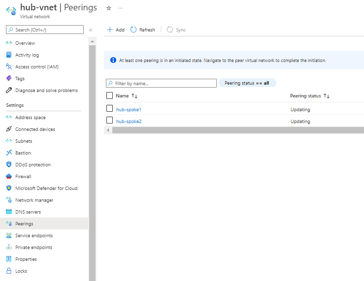 *링크 : Create, change, or delete an Azure virtual network peering | Microsoft Docs