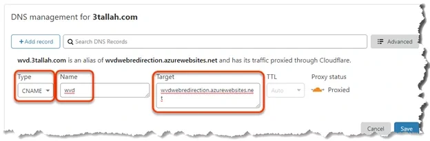 5.Create CNAME Record for this Function App URL in DNS provider.