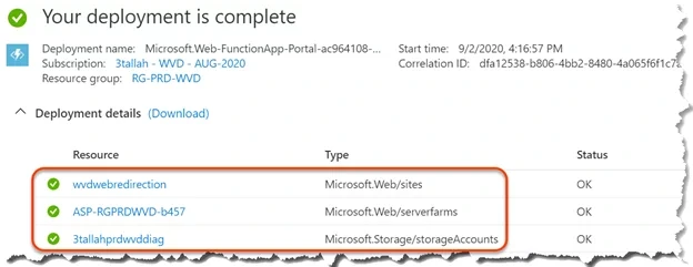 2.Click on the created Function App in our case (wvdwebredirection)