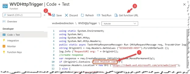 1.Go back the created Function App main blade in our case (wvdwebredirection)