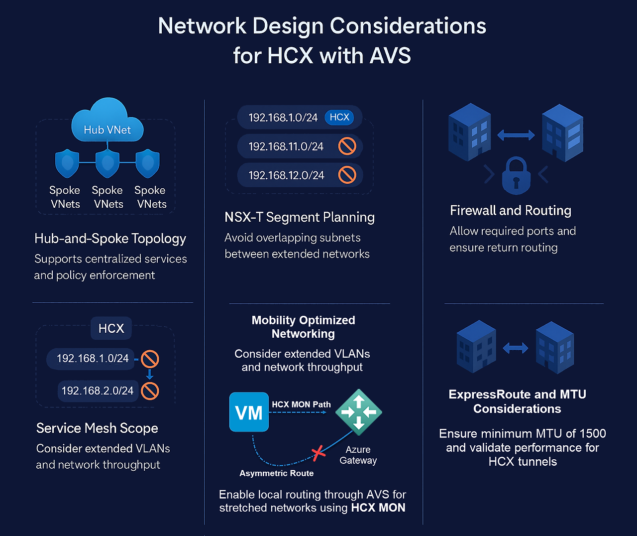 VMware HCX를 사용하여 온프레미스 환경에서 Azure VMware Solution으로 워크로드를 마이그레이션할 때 네트워크 설계는 아키텍처에서 가장 중요한 부분 중 하나가 됩니다. HCX가 모빌리티 및 네트워크 확장의 복잡성을 상당 부분 처리하지만, 부적절한 라우팅, 세분화 및 어플라이언스 배치 계획은 심각한 중단이나 마이그레이션 실패를 초래할 수 있습니다.