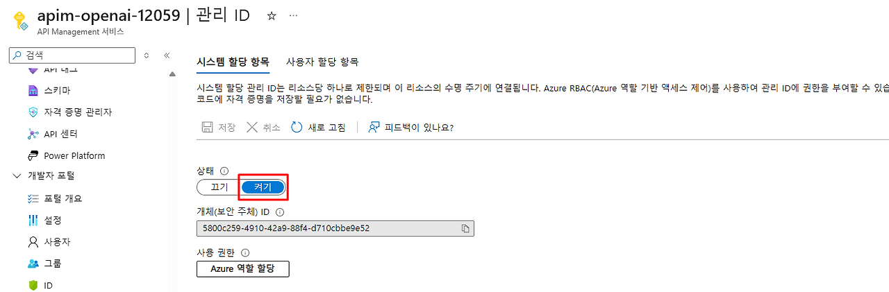 만약 권한이 자동으로 설정되지 않았다면, Azure OpenAI 리소스에서 수동으로 API Management의 Managed Identity에 Cognitive Services OpenAI User 역할을 할당하세요.